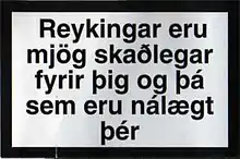 - « Reykingar eru mjög skaðlegar fyrir þig og þá sem eru nálægt þér » (« Fumer est très nocif pour toi et pour ton entourage »)