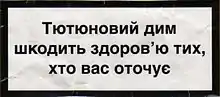 - « Тютюновый дим шкодить здоров'ю тих, хто вас оточує » (« La fumée du tabac nuit à la santé de votre entourage »)