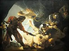 La mythologie grecque fait plusieurs références à l'aveuglement comme un châtiment divin, reflétant la pratique humaine. Par exemple, Œdipe crève ses propres yeux après avoir accompli accidentellement la prophétie annonçant qu'il finirait par tuer son père et épouser sa mère[6]. Dans la Bible, Samson est aveuglé lors de sa capture par les Philistins et est condamné à tourner la meule de la prison[7].