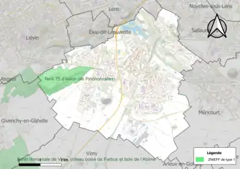 Le territoire communal comprend une ZNIEFF de type 1[Note 1] : le terril 75 d'Avion (de Pinchonvalles) qui, avec 140 ha, est le deuxième terril d'Europe pour la surface occupée[13].
