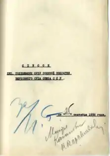 Ordre d'arrestation du père d'Aza Rakhmanova paraphé par Staline
