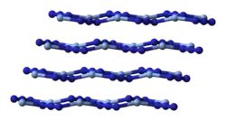 | Structure de l'azoture d'argent, l'argent est en bleu clair et l'azote en bleu foncé | |