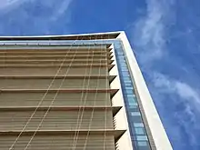 Occupant un bloc triangulaire, la tour principale est orientée est-ouest, avec des façades aveugles aux extrémités est et ouest, qui reçoivent la plupart de la lumière solaire directe[4]. Les façades nord et sud, à ensoleillement plus doux, sont vitrées pour faire profiter de l'éclairage naturel, et la façade nord est couverte de brise-soleils horizontaux pour atténuer l'intensité solaire pendant l'hiver[7].