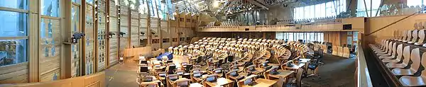 Le Parlement écossais, dissous en 1707, est recréé après des élections en 1999. Elle se sont tenues des suites du fait qu'une majorité de l'électorat s'y soit déclaré favorable lors d'un référendum de dévolution deux ans plus tôt, ce dernier ayant engendré une loi en 1998 permettant leur tenue. Le nouveau Parlement écossais permet, à son ouverture, de rassembler les différents éléments de ce parlement en un seul bâtiment, pour 129 parlementaires et plus de 1 000 employés et fonctionnaires.
