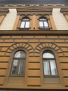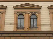 Le bâtiment a été construit dans un style néorenaissance, avec une réminiscence claire des palais de la Renaissance italienne et une influence de l'architecture néoclassique[2]. Il est composé d'un rez-de-chaussée et d'un étage et, en 1883, il possédait deux entrées, correspondant aux deux autorités qui avaient présidé à sa construction : le ministère de la Justice et le quartier de Terazije ; l'une de ces portes a été supprimée en 1910 lors de travaux d'aménagement[1]. Le rez-de-chaussée est constitué de grands blocs de pierre tandis que le premier étage est recouvert de tuiles jaunes et doté de fenêtres en demi-cintre surmontées de tympans triangulaires[1],[2]. La façade se termine par une corniche richement décorée, elle-même couronnée d'un attique doté d'une balustrade[1],[2].