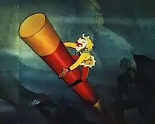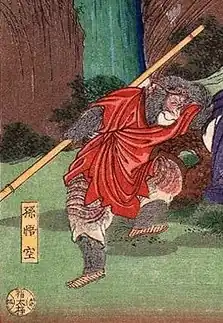 - Dans le manga Dragon Ball, le bâton magique de Sangoku (lui-même inspiré de Sun Wukong) est basé sur celui du Roi singe[6]. Comme son homologue littéraire, il peut beaucoup se rallonger, ce qui l'aide pendant les combats. Cependant, il ne peut pas se dupliquer. Le bâton lui est donné par son grand-père adoptif, Sangohan, un humain qui le recueille enfant et lui enseigne les arts martiaux[7].