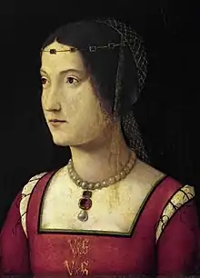 Buste de Béatrice à l'âge d'une quinzaine d'années, par Giovanni Cristoforo Romano conservé au Musée du Louvre à Paris | ||