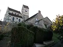Elle se compose de deux parties bien distinctes, à savoir une nef non voûtée de cinq travées accompagnée de deux bas-côtés, et d'un clocher en bâtière se dressant au-dessus de la dernière travée du bas-côté nord, l'ensemble datant du milieu du XIIe siècle et d'un chœur de deux travées se terminant par un chevet plat, également accompagné de deux collatéraux, et datant du milieu du XIIIe siècle.