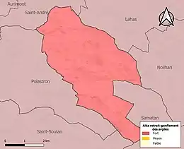 Le retrait-gonflement des sols argileux est susceptible d'engendrer des dommages importants aux bâtiments en cas d’alternance de périodes de sécheresse et de pluie. La totalité de la commune est en aléa moyen ou fort (94,5 % au niveau départemental et 48,5 % au niveau national). Sur les 56 bâtiments dénombrés sur la commune en 2019, 56 sont en aléa moyen ou fort, soit 100 %, à comparer aux 93 % au niveau départemental et 54 % au niveau national. Une cartographie de l'exposition du territoire national au retrait gonflement des sols argileux est disponible sur le site du BRGM[21],[Carte 3].