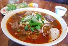 Le bún bò Huế (prononcé [ɓun˧˥ ɓɔ˧˩ hwe˧˥], en vietnamien, bò « bœuf », bún « vermicelle de riz », et Hué[1]) est une soupe traditionnelle épicée-acidulée-sucrée-salée-umami de la cuisine vietnamienne, originaire et spécialité culinaire de la région de Hué, à base de bouillon, de bœuf et d'autres viandes, de vermicelle de riz, souvent pimentée, accompagnée de pousses de soja, d'herbes aromatiques et de sauce de poisson[2],[3].