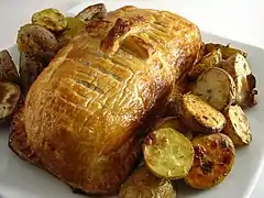 | Mets similaires | Rosbif, shooter's sandwich, feuilleté, tourte, friand, charcuterie pâtissière, pâté en croûte, pâté lorrain, koulibiak |