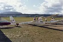 Pour les planeurs à roue, on utilise plutôt un "crabe" avec un sabot recevant la roue porté par 4 roulettes orientables (genre "chariot de supermarché") qui permet de rouler le planeur dans toutes les directions.