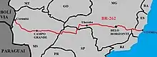La BR-262 est une importante route fédérale transversale brésilienne qui traverse les États d'Espírito Santo, Minas Gerais, São Paulo et Mato Grosso do Sul. Son itinéraire commence dans la ville de Vitória, capitale d'Espírito Santo, en passant par des villes importantes telles que Belo Horizonte, Uberaba et Campo Grande jusqu'à ce qu'il se termine à la prochaine à la frontière avec la Bolivie, à Corumbá, Mato Grosso do Sul. Elle a une longueur de 2295,400 km[1].