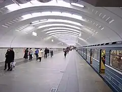 Elle est conçue et réalisée, par les ingénieurs : E.Kobzeva, P.Vasilev, et les architectes : V.I.Klokov et L.N.Popov. C'est une station peu profonde construite suivant un modèle standard à voute. Sur le thème de l'exploration de l'Arctique sa finition est composée : de marbre gris sur les murs, de pavés en granit gris et noir sur le sol et des luminaires sont disposés dans des fentes sur l'arc elliptique de la voute. Une sculpture due à l'artiste A.M.Mosiychuk est placée à l'extrémité du quai au dessus de la sortie[3].