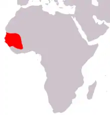 Le babouin de Guinée vit dans une petite région de l'Afrique occidentale. Son aire de répartition s'étend sur la Guinée, le Sénégal, la Gambie, le sud de la Mauritanie et l'ouest du Mali.