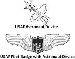 À l'aube de l'ère spatiale, tous les insignes d'aviateur des États-Unis peuvent être transformés en insignes d'astronaute pour les militaires qui deviennent astronautes.