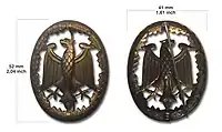L'insigne est métallique, mesure approximativement 55 mm de haut et 43 mm de large et possède une épingle de port à pivot au revers. Il est composé d'une couronne ovale de feuilles de chêne avec l'aigle allemand en son centre. Il peut être en or, argent ou bronze. Un carré de 1 cm par 1 cm portant un numéro (par incréments de cinq - 5, 10, 15...) est ajouté au bas quand le badge de niveau 3 (or) est décernée pour plusieurs années à ce même niveau. Ces années n'ont pas besoin d'êtres consécutives.