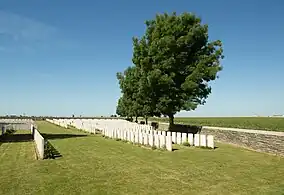 C'est donc à cette période que fut créé ce cimetière pour inhumer les soldats victimes des combats. Il fut utilisé jusqu'à la fin de la guerre. Après l'armistice de nombreux corps provenant de cimetières provisoires des environs y furent regroupés. C'est pour cette raison que sur les 1 293 soldats inhumés dans ce lieu, 752, soit plus de la moitié, ne sont pas identiflés[1],[2].