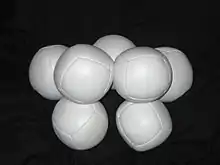 La jonglerie aux balles regroupe celle des ballons (plus gros) et des sacs à grains, ce qui montre que la forme de l’objet n’est pas toujours forcément parfaitement sphérique.