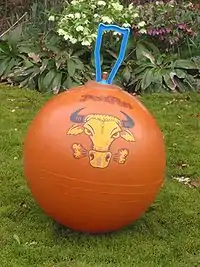 Un ballon sauteur chevauché par son utilisateur.