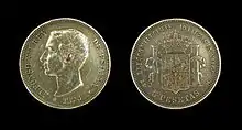Lors des fouilles, les archéologues relèvent la dalle nord sans avoir le temps d'approfondir leurs recherches. Quelques jours plus tard, les propriétaires du terrain découvrent à cet endroit trois pièces de monnaie espagnoles en argent de cinq pesetas : deux datées de 1870 et une, datée de 1875, montrant le portrait du roi d'Espagne Alphonse XII. Elles trouvent également une médaille, elle aussi en argent, montrant d'un côté une scène de guerre, de l'autre l'inscription[11] :