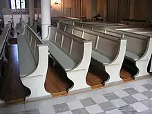 Comme pour les chaises, les fidèles pouvaient se voir réserver tout ou partie d'un banc contre versement d'une contribution généralement annuelle.