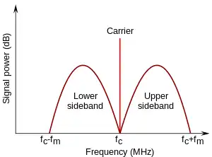 La modulation d'amplitude d'un signal porteur produit normalement deux bandes latérales en miroir. Les composantes du signal situées au-dessus de la fréquence de la porteuse constituent la bande latérale supérieure (USB) et celles situées au-dessous de la fréquence de la porteuse constituent la bande latérale inférieure (LSB). Par exemple, si une porteuse de 900 kHz est modulée en amplitude par un signal audio de 1 kHz, il y aura des composantes à 899 kHz et 901 kHz ainsi qu'à 900 kHz dans le spectre radiofréquence généré ; Ainsi, une largeur de bande audio de (disons) 7 kHz nécessitera une largeur de bande du spectre radioélectrique de 14 kHz. Dans la transmission AM conventionnelle, telle qu'elle est utilisée par les stations AM de la bande de radiodiffusion, le signal audio d'origine peut être récupéré ("détecté") par des circuits de détection synchrones ou par de simples détecteurs d'enveloppe, car la porteuse et les deux bandes latérales sont présentes. On parle parfois de modulation d'amplitude à double bande latérale (DSB-AM), mais toutes les variantes de DSB ne sont pas compatibles avec les détecteurs d'enveloppe.