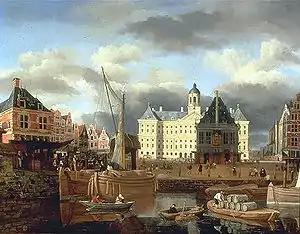 En 1581, les sept provinces septentrionales des Pays-Bas espagnols déclarent leur indépendance. Soucieuses de préserver celle-ci, elles s’organisent sous l’autorité souveraine des états généraux que préside le « grand pensionnaire », titre assumé par Johan van Oldenbarnevelt de 1589 à 1619. Chaque province est alors placée sous l’autorité d'un lieutenant, le stathouder. Avec ses ports — Rotterdam, Dordrecht, mais surtout Amsterdam — ouverts sur un commerce maritime en pleine expansion, la Hollande est sans doute alors la plus puissante et la plus florissante des sept provinces. Les armateurs hollandais, notamment la Compagnie van Verre d’Amsterdam, constituent une flotte commerciale[2], qui permet aux investisseurs de réaliser de jolis profits sur les sommes engagées[2]. Afin d’éviter une concurrence contreproductive, ces sociétés unissent leurs efforts en 1600 pour créer la « compagnie unifiée des Indes orientales d’Amsterdam » à laquelle la ville octroie un monopole sur le commerce asiatique[2]. À cette époque, d’autres compagnies sont créées dans le reste des Provinces-Unies, mais aucune n’est suffisamment puissante pour tenir tête aux Espagnols. Inquiet devant cette menace, le gouvernement des Provinces-Unies fait pression sur ces sociétés afin qu'elles fusionnent en 1602, devenant la Compagnie néerlandaise des Indes orientales[2], société anonyme cotée en Bourse. La compagnie est alors dirigée par un conseil de dix-sept membres, dont huit nommés par la chambre d’Amsterdam qui finance la moitié des dépenses de l’organisation et en retira des bénéfices importants. La Hollande s’assure ainsi un quasi-monopole sur le commerce maritime, grâce à ses forces navales qui peuvent tenir tête aux rivaux espagnols et portugais. Les Provinces-Unies renforcent leur mainmise sur le commerce international et entrent dans une ère où ils devinrent « les intermédiaires obligés du commerce universel »[3]. Comme toutes les villes portuaires de l’époque, confrontées à un afflux de monnaies étrangères, Amsterdam a recours aux services des banques privées et des officines de change, les « caissiers » (kassier)[4].