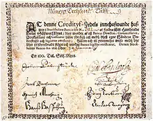 Une première émission eut lieu en 1661[2]. Les billets les plus connus sont ceux de 1666, nommés Palmstruchers.