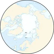 Durant l'Holocène la banquise a probablement toujours été présente, même si très fortement réduite en surface il y a 6 000 à 8 000 ans[20] durant le maximum thermique de l'Holocène où l'arctique était de plusieurs degrés plus chauds qu'au XXe siècle[21]. Les données disponibles montrent que le déclin de la banquise y était sans précédent depuis au moins 1 500 ans[22] ; l'étude ne remontant pas plus loin dans le passé, notons tout de même que la désintégration des plateformes glaciaires d'Ellesmere, vieilles de 4 500 ans est en cours[23].