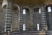 Cette dernière rappelle en particulier la curieuse couverture tronc-pyramidale de la partie centrale du baptistère, qui laisse supposer que le projet de Diotisalvi prévoyait ce type de couverture ; d’autant plus qu’on lui attribue aussi la réalisation d’une église pisane également dédiée au Saint-Sépulcre, dont le type de couverture est tout à fait identique.