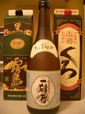 - Le shōchū est une boisson, originaire de l'île de Kyūshū mais actuellement produite un peu partout au Japon, titrant 25 % d'alcool (25 degrés) et obtenue par distillation d'orge, de patates douces ou de riz. Ce breuvage est assez bon marché dans le pays.