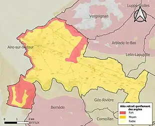 Les communes limitrophes sont Aire-sur-l'Adour, Arblade-le-Bas, Bernède, Gée-Rivière, Lelin-Lapujolle, Saint-Germé et Vergoignan.