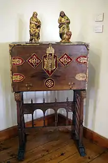 Pour Eberlein et Burr, c'est un meuble d'origine espagnole créé à partir du coffre de mariée catalan (XVIe siècle) qui est lui-même une évolution des coffres mudéjars maquettés de cette époque. La relation familiale de la Couronne Espagnole avec l'empire autrichien permit l'exportation du meuble qui fut rapidement imité par les artisans allemands, en particulier à Augsbourg, ville des Fugger, banquiers de Charles Quint. La production allemand supplanta progressivement le meuble espagnol, jusqu'à la promulgation d'une loi de Philippe III d'Espagne interdisant l'importation de secrétaire d'Allemagne".[5]