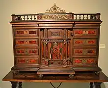 - Bargueño de type crédence avec des tiroirs visibles sur la partie haute, et des portes sur la partie basse.