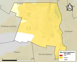 Le retrait-gonflement des sols argileux est susceptible d'engendrer des dommages importants aux bâtiments en cas d’alternance de périodes de sécheresse et de pluie. 87,5 % de la superficie communale est en aléa moyen ou fort (52,8 % au niveau départemental et 48,5 % au niveau national). Sur les 626 bâtiments dénombrés sur la commune en 2019, 626 sont en aléa moyen ou fort, soit 100 %, à comparer aux 70 % au niveau départemental et 54 % au niveau national. Une cartographie de l'exposition du territoire national au retrait gonflement des sols argileux est disponible sur le site du BRGM[19],[Carte 2].