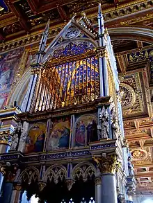 - Peintures sur le tabernacle d'Arnolfo di Cambio, grand autel de l'Archibasilique Saint-Jean de Latran de Rome (1367-1368).