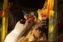 Barong[n 1] (littéralement « géant »[1]) est une créature mythologique balinaise ressemblant à un lion. Il est le Banaspati rajah (seigneur de la forêt), chef des forces du bien et ennemi de Rangda, la reine démon, chef d'une armée de sorcières. La bataille entre Barong et Rangda représente la lutte éternelle du bien et du mal et est figurée par la danse du Barong (aussi appelée « le barong »[1]).