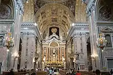 Le baroque napolitain est une forme artistique et architecturale qui se développe au XVIIe siècle et dans la première moitié du XVIIIe siècle à Naples. Il est reconnaissable à ses décorations flamboyantes de marbre et de stuc, caractéristiques des structures du bâtiment. En particulier, le baroque napolitain s'épanouit au milieu du XVIIe siècle avec les œuvres de plusieurs architectes locaux hautement qualifiés et se termine au milieu du siècle suivant, avec l'arrivée des architectes néoclassiques.