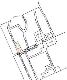 - Les bâtiments sont construits autour d'une cour au fond de laquelle se développe un escalier ouvert à double rampe
