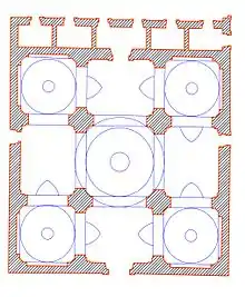 Cependant, d'autres églises de cette période montrent encore un plan traditionnel (croix latines et grecques), ce choix étant favorisé par une plus grande simplicité de construction et pour réduire le coût et le temps d'exécution.