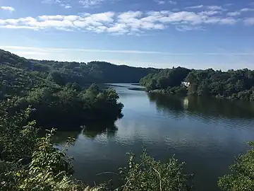 La retenue d'eau forme le lac de Chambon, appelée aussi lac d'Éguzon.