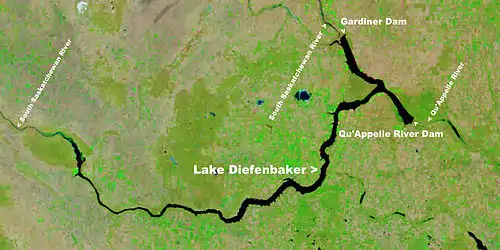 Depuis que les barrages Gardiner et de la rivière Qu'Appelle retiennent l'eau du lac Diefenbaker, son effluant a un débit constant toute l'année. Ces ouvrages permettent l'approvisionnement en eau d'industrie comme Global Mosaic et Yara International[4] et de villes comme Regina, Saskatoon, Moose Jaw[2]. Les agriculteurs profitent de cette constance qu'a apporté la construction des barrages pour irriguer leurs champs et abreuver leur bétail[4]. Le Lac Diefenbaker est également utilisé à des fins récréatives[5].