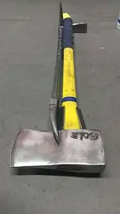 Basée sur l'outil Kelly (en), la barre Halligan est un outil polyvalent utilisé pour forcer, tordre, poinçonner ou frapper[7]. Elle consiste en un pied-de-biche, une lame (coin ou herminette) et un pointeau. Elle est particulièrement pratique pour ouvrir rapidement différents types de portes verrouillées.