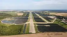 Aujourd'hui en service, la Centrale solaire photovoltaïque de Marville s'étend sur 155 ha et cohabite avec l'activité de l'aérodrome.