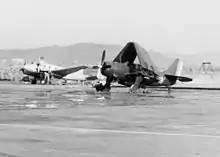 Un Curtiss SB2C Helldiver devant un NC.702 Martinet en 1951 sur la base.