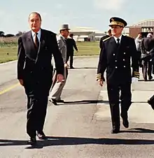 Jean-Charles Marchiani, préfet du Var et Jacques Chirac, président de la République en 1996 à la Base d'aéronautique navale d'Hyères Le Palyvestre en 1996.