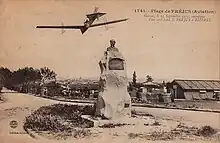 Le , Roland Garros passe à la postérité pour avoir réussi la première traversée aérienne de la mer Méditerranée en 7 h 53 min évoluant à une vitesse moyenne de 101 km/h. Son amie Marcelle est la seule femme et la seule civile présente sur le terrain du Centre d’aviation de la base aéronautique navale de Fréjus-Saint-Raphaël d’où il prend l'air[6]. Jean Cocteau, qui écrira plus tard sur Roland Garros le long poème intitulé Le Cap de Bonne Espérance y évoque la « jeune femme au manteau de skunks ». Le monoplan Morane-Saulnier, équipé d'un moteur Gnome de 80 chevaux et d'une hélice Chauvière décolle à 5 h 47, alourdi de 200 litres d’essence et de 60 L d'huile de ricin. Garros part à la boussole, avec un moteur qui subit deux pannes et perd une pièce, au large de la Corse et au-dessus de la Sardaigne. Il lui reste 5 litres d'essence quand il se pose à Bizerte à 13 h 40 après avoir parcouru quelque 780 kilomètres[7],[8].