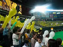 La première référence à l'expression National Pastime (passe-temps national) remonte à 1889[24]. Comme sport populaire, le football américain concurrence le baseball depuis un demi-siècle. La bascule semble s'effectuer au milieu des années 1960. En 1965, un sondage donne encore un net avantage au baseball sur le football américain par 38 % contre 25 % (45 % - 23 % en 1964)[25]. En 1967, le football américain prend pour la première fois l'avantage par 39 % contre 29 %[25]. Le baseball atteint son point bas en 1975. Cette saison-là, la finale serrée entre les Red Sox de Boston et les Reds de Cincinnati passionne les téléspectateurs, relançant du même coup l'intérêt du public pour une discipline qui souffrait depuis dix ans d'une image de sport du passé[25]. Depuis lors, les affluences sont clairement à la hausse pour atteindre des records historiques au début du XXIe siècle. En 2007, 79 502 524 spectateurs ont assisté aux 2 425 matchs de la saison régulière de la MLB, soit une moyenne record par match de 32 785 spectateurs et une hausse de 4,5 % par rapport à la saison record de 2006[26]. De plus, 42 812 812 spectateurs ont rempli les tribunes des stades des ligues mineures en 2007. C'est également un record pour les Minors[26]. Année de crise économique, 2009 est marquée par un léger tassement des affluences. Avec 73 418 479 spectateurs en saison régulière de Ligue majeure, le cru 2009 se place au cinquième rang de l'histoire de la MLB[27]. En 2010, le football américain professionnel reste en tête des sports préférés des Américains (31 %) devant le baseball (17 %), le football américain universitaire (12 %), le sport automobile (7 %), le basket-ball professionnel masculin (6 %), le hockey sur glace (5 %), le basket-ball universitaire (4 %) et le football masculin (4 %)[28].