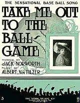 La chanson Take Me Out to the Ball Game (1908) est l'hymne du baseball. Ce titre est traditionnellement joué et repris par les spectateurs lors de la pause de la septième manche. Après les attentats du 11 septembre 2001, nombre de franchises jouent God Bless America à la septième manche. 2008, qui marque le centenaire de la création de Take Me Out to the Ball Game, donne lieu à nombre de célébrations[84]. La collection de Francis Driscoll comprend plus de 50 000 chansons dédiées au baseball[85], mais aucune n'a atteint la notoriété de Take Me Out qui figure sur le podium des chansons les plus jouées aux États-Unis derrière l'hymne américain et Happy Birthday to You[84].